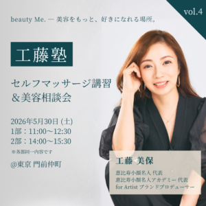 【工藤塾 vol.4】セルフマッサージ講習&美容相談会を開催します。